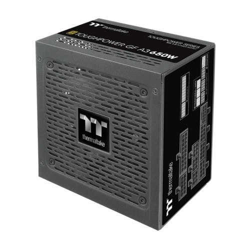 Thermaltake Toughpower GF A3 650 W er en kvalitets ATX-strømforsyning designet til pålidelig og effektiv drift af din pc. Med 80 PLUS Gold-certificering leverer den høj energieffektivitet, mindre varme og mere økonomisk drift. Det fuldt modulære design gør kabelstyring lettere og forbedrer luftgennemstrømningen i kabinettet.