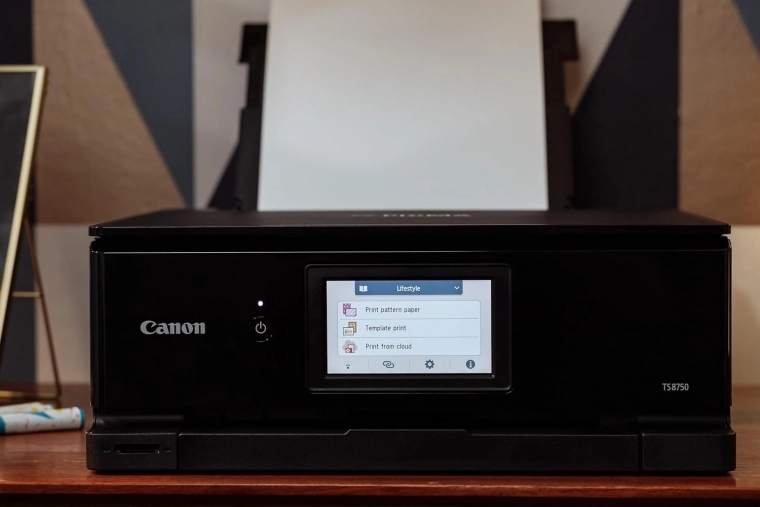 Canon PIXMA TS8750 leverer førsteklasses printkvalitet takket være Canon FINE-teknologi med seks farveblæk, som sikrer levende og skarpe resultater med en maksimal udskrivningsopløsning på 4800 x 1200 dpi. Printeren understøtter automatisk dobbeltsidet udskrivning og tilbyder kantløs udskrivning, hvilket er ideelt til fremstilling af fotos i høj kvalitet.