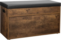 Træbænk til sko i loft stil byder på moderne udseende og funktionalitet i ét. Lavet af spånplade, med en blød, sort polstring ovenpå, der er let aftagelig takket være velcro. Under polstringen er der rigeligt opbevaringsplads til tøfler eller små stykker tøj som huer, tørklæder eller handsker.