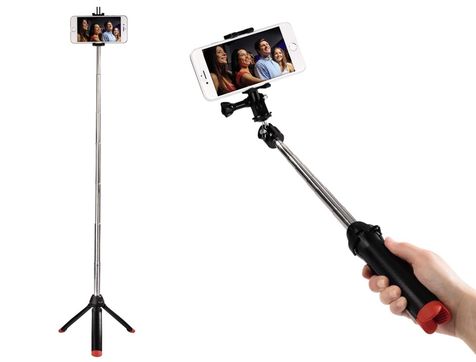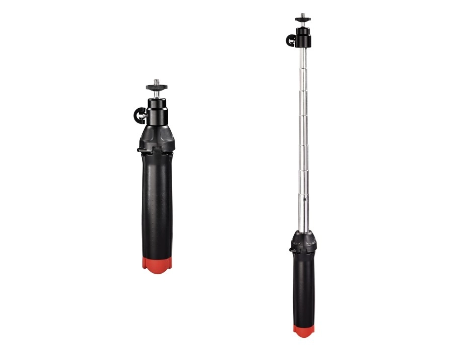 Teleskopisk udtræk: Håndtaget kan justeres fra 20 cm til 90 cm, hvilket er nyttigt ved fotografering af større grupper.