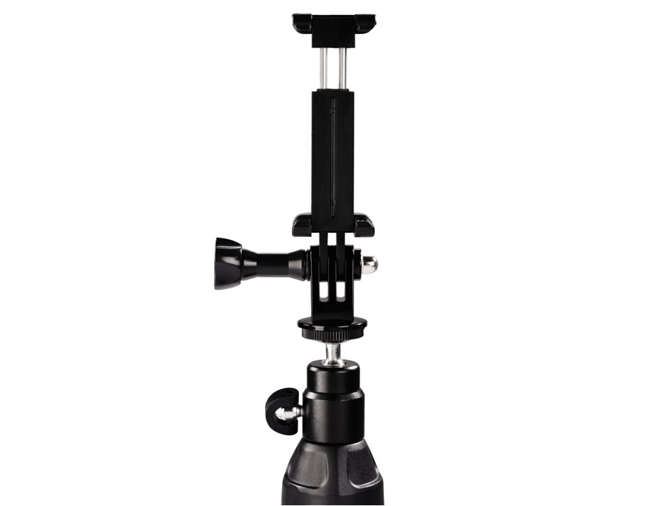 4-i-1: Funktioner som bordstativ til vlogs, selfie-stang, stativ til kamera (1/4" gevind) og actionkameraer som GoPro.