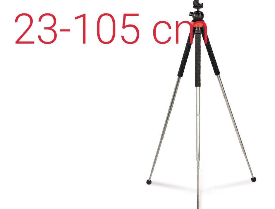 Justerbar højde: Stativet giver mulighed for højdejustering fra 23 cm til 105 cm, hvilket sikrer maksimal komfort under brug.