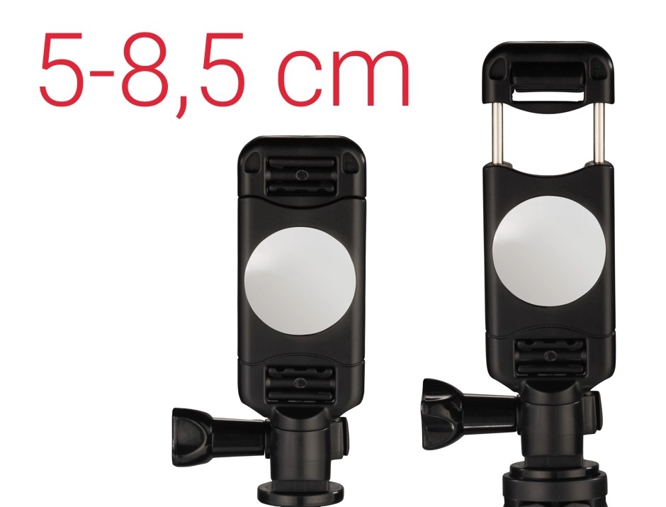 - Justerbar holder: Muliggør fastgørelse af smartphones med en bredde fra 5 til 8,5 cm.