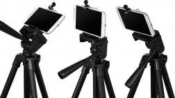 Takket være standard 1/4"-montering er holderen kompatibel med de fleste fotostativer og selfiestænger. Kæbeklemmens bredde dækker de fleste smartphones og tablets (tablets i liggende tilstand), så du får stabilitet og fleksibilitet til hvert eneste skud.