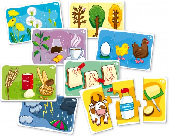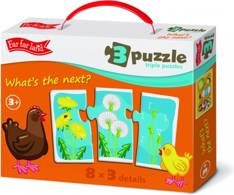 Far Far Land puslespil trio tilbyder en sjov og lærerig aktivitet for børn. Hver pakke indeholder 8 unikke puslespilsbilleder bestående af tre brikker, der viser genstande, der hører til en bestemt serie.