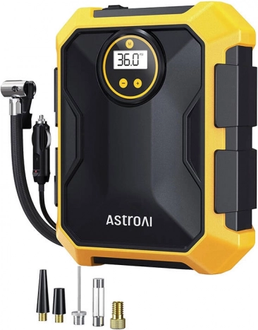 Den praktiske ASTROAI 12V kompressor er designet til hurtig og præcis oppumpning af personbildæk, cykler, sportsbolde og luftmadrasser. Det digitale display gør det muligt at overvåge trykket i realtid og vælge mellem flere enheder. Takket være de kompakte mål og det integrerede opbevaringsrum til dyser har du alt tilbehør lige ved hånden.