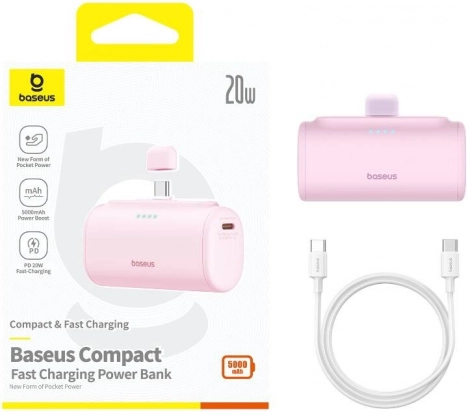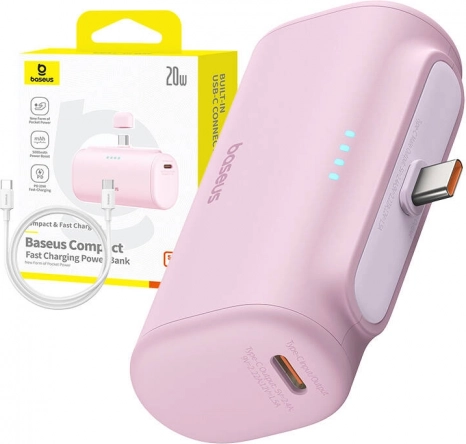 Nyd hurtig og bekvem opladning på farten. BASEUS Compact powerbank med 20 W effekt oplader din smartphone lynhurtigt – for eksempel iPhone 15 op til 57 % på 30 minutter. Det integrerede USB‑C stik sikrer øjeblikkelig tilslutning uden behov for separat kabel, så du kan lade når som helst og hvor som helst.
