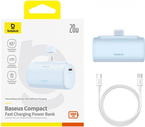 Denne ultrakompakte Baseus‑powerbank leverer pålidelig energi til din telefon når som helst og hvor som helst. Takket være 20 W effekt og 5000 mAh kapacitet kan den hurtigt oplade moderne smartphones, samtidig med at den bevarer minimale mål og en vægt på cirka 100 g.