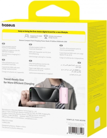 Denne kompakte Baseus powerbank er designet til hurtig og sikker opladning af smartphones og andre enheder. Den tilbyder 20W hurtigopladning, et praktisk integreret stik og en USB‑C-port til universel anvendelse. Med en kapacitet på 5000 mAh får du en pålidelig energireserve når som helst på dagen.