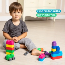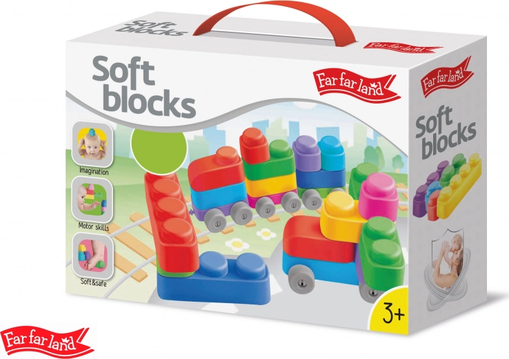Byggesæt Far Far Land er et sjovt og kreativt legetøj til børn! Indeholder 21 bløde blokke og 16 hjul, som støtter udviklingen af motorik og fantasi hos dine børn.