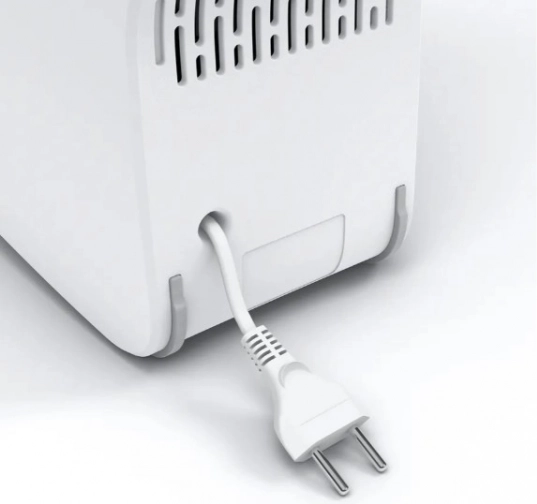 Smarte detaljer gør hverdagsbrug lettere: integreret opbevaringsplads til sigter og kabelfach holder alting på plads. De kompakte mål sparer plads på køkkenbordet og i skabet, og nem afmontering sikrer hurtig rengøring.