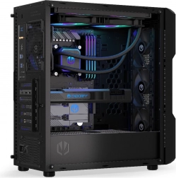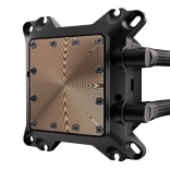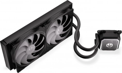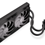 Hjertet i systemet er en asymmetrisk vandblok koblet med en pumpe på keramisk leje og PWM‑styring, der tilpasser hastigheden efter den aktuelle belastning. 280 mm‑radiatoren er afstemt til Fluctus‑blæserne og sammen med de bøjelige slanger på ca. 39 cm gør den montering let i næsten enhver position i kabinettet.