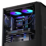 Den asymmetriske vandblok og pumpen med keramisk leje, styret af PWM, holder temperaturerne under kontrol selv ved langvarig belastning og minimerer støj.