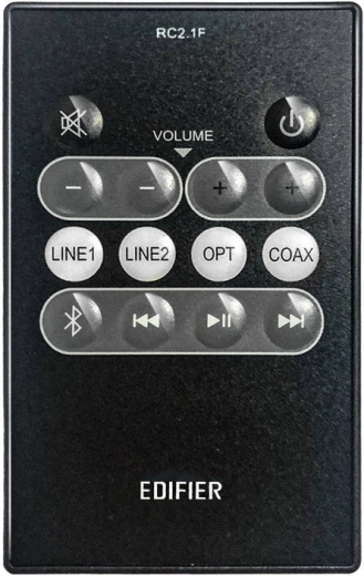 Med denne fjernbetjening får du fuld kontrol over dine EDIFIER R2750DB-højttalere uden at skulle rejse dig. Den intuitive knaplayout og det ergonomiske design sikrer hurtig og præcis betjening af alle grundlæggende funktioner.