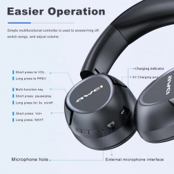 Nyd kvalitetslytning uden kompromiser. AWEI A770BL leverer stereolyd med tydelige detaljer og en pålidelig trådløs forbindelse via Bluetooth. De bløde ørepuder i kunstlæder tilpasser sig behageligt, så de er ideelle til længere lytning derhjemme, på kontoret og på farten.
