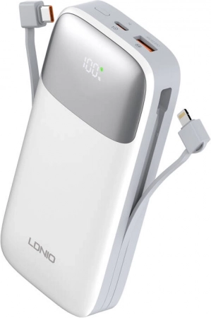 LDNIO powerbank med en kapacitet på 20.000 mAh sikrer rigelig strøm til dine enheder, uanset hvor du er. Med to indbyggede kabler – USB-C og Lightning – behøver du ikke længere bekymre dig om glemte kabler. Derudover har den et LED-display, der informerer dig om opladningsstatus.