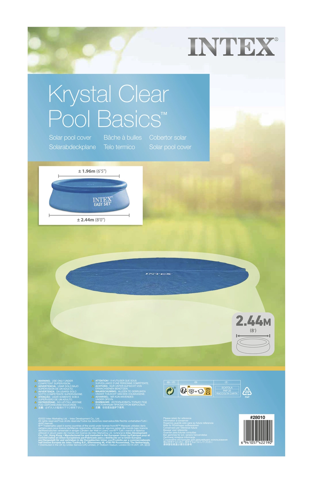 Solpresenningen fra INTEX er det ideelle tilbehør til at forlænge badesæsonen. Den specielle luft- (boble-) film lader solens stråler passere ned i vandet og hjælper det med at blive opvarmet naturligt. Samtidig skaber den en isolerende barriere, som reducerer afkølingen om natten.