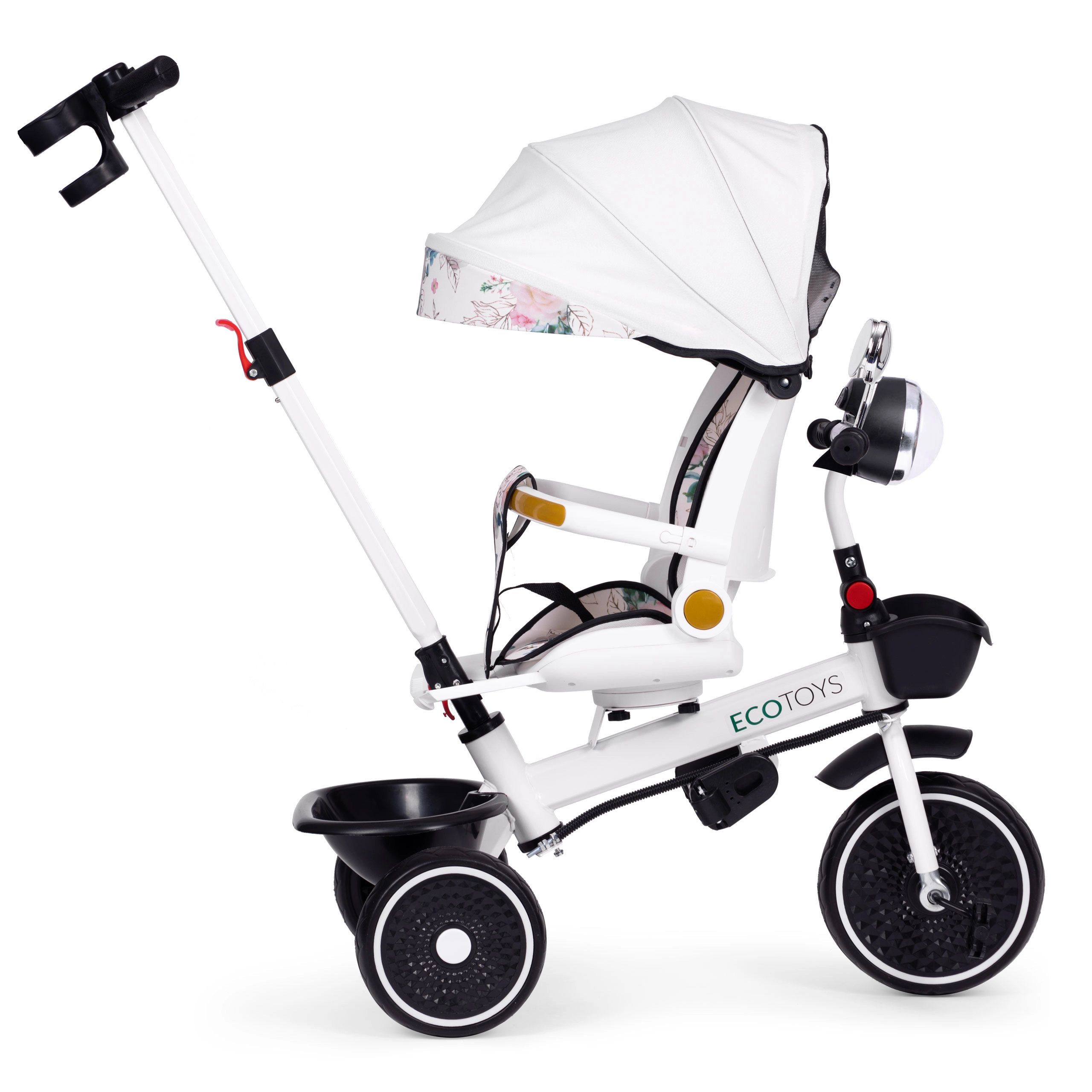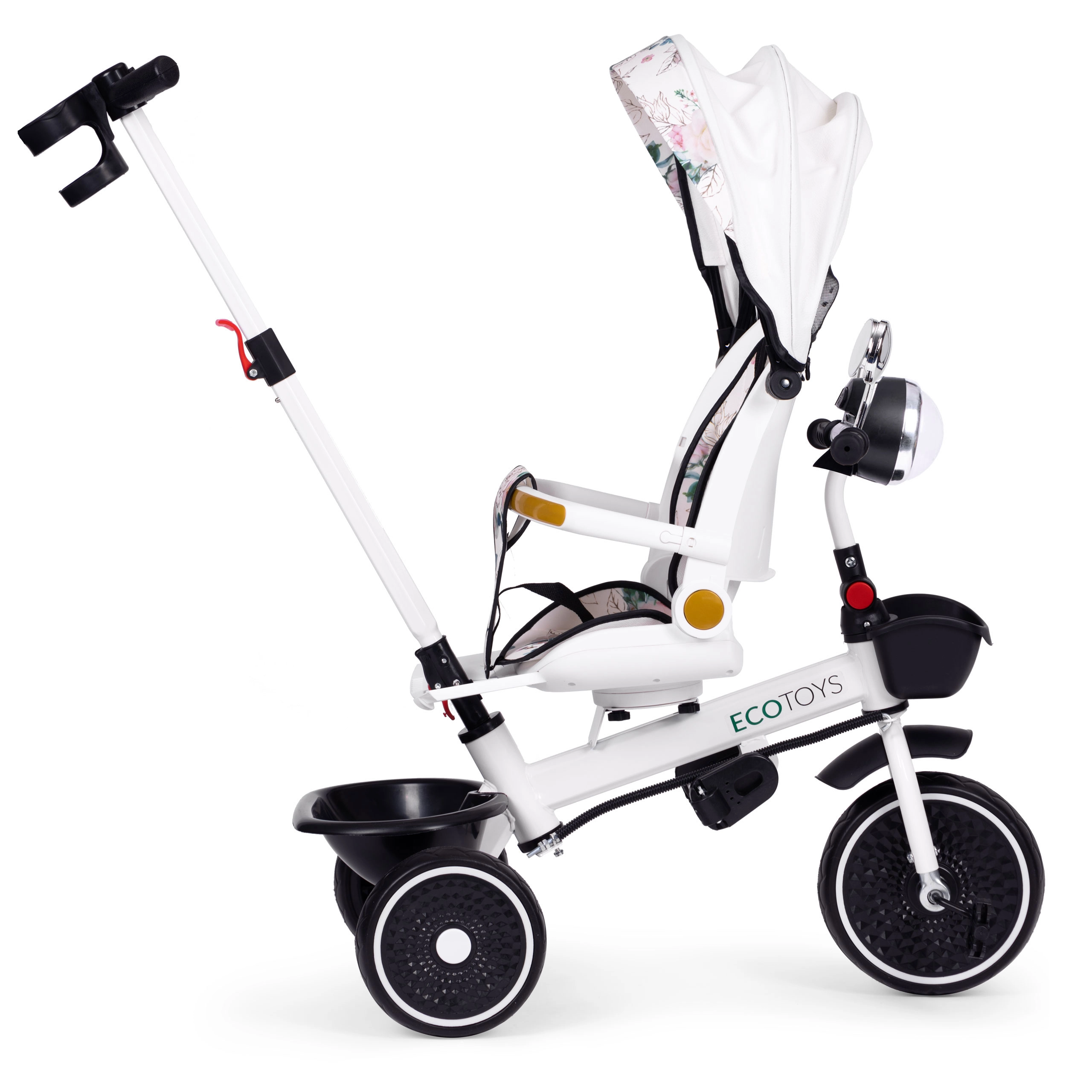 Leder du efter en trehjulet cykel, der vokser med dit barn? ECOTOYS tilbyder en gennemtænkt løsning: en kombination af klapvogn og tricykel med tilpasningsbar konfiguration. Du kan nemt fjerne bøjle, kaleche og forældrehåndtag, så produktet tilpasses barnets alder og færdigheder. Det 360° roterende sæde gør det muligt at køre de mindste vendt mod forælderen, og de større kan sidde fremad for bedre udsyn og mere sjov.