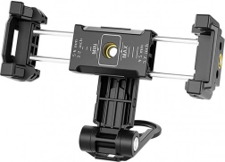 Takket være det brede klemmespænd 56–95 mm passer den til de fleste telefoner. V‑formede gummiindlæg sikrer et fast greb uden skader, mens to 1/4"-gevind på kroppen og basen muliggør nem montering på stativ, arm eller selfiestang. Den foldbare konstruktion fungerer også som bordstander til film, møder og sociale medier.