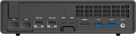 - 2× SFP+ 10Gb; 1× RJ45 2,5G (Intel KT226V B3); 1× RJ45 2,5G med vPro (Intel I226‑LM)
