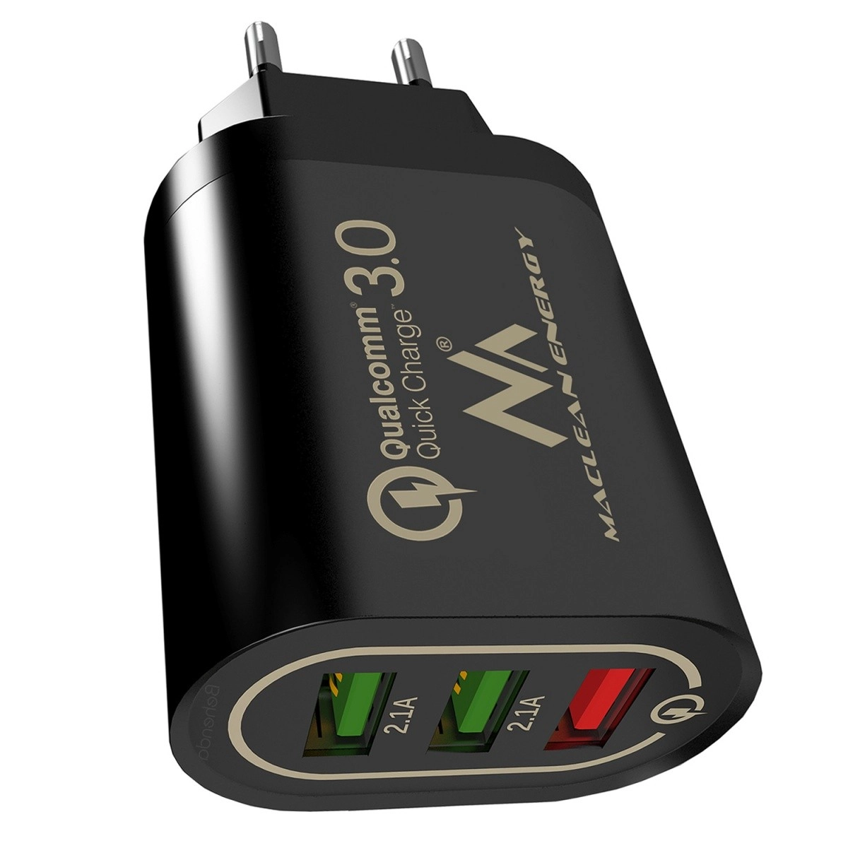Denne kompakte og kraftfulde MACLEAN ENERGY vægoplader med tre USB-porte lader dig oplade op til tre enheder samtidigt. Med Qualcomm Quick Charge 3.0 reducerer du tiden ved stikkontakten og får stabil og sikker opladning til telefoner, tablets, hovedtelefoner og anden elektronik.