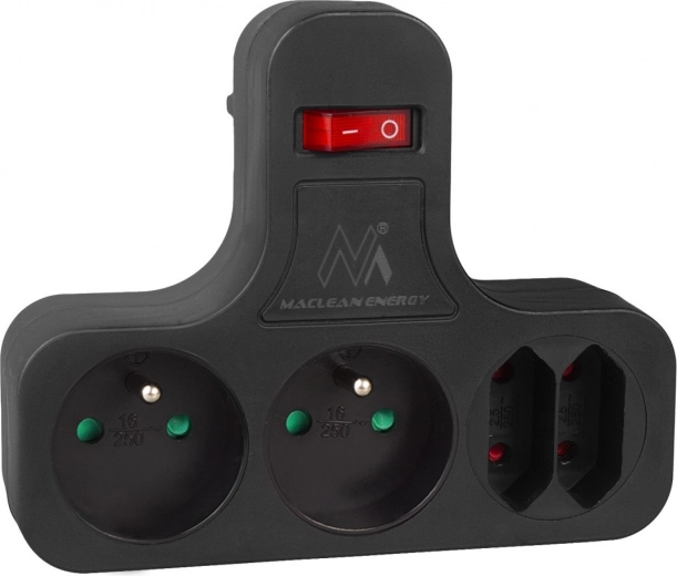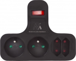 Stikdåsen Maclean Energy sikrer sikker og effektiv brug af elektriske enheder. Takket være fire udtag (2 flade og 2 Schuko-typer) kan du tilslutte flere enheder på én gang og nemt styre dem med én afbryder.
