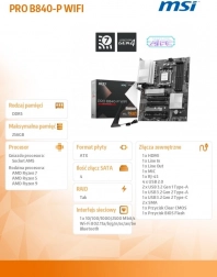 MSI PRO B840-P WIFI udmærker sig med et rent design i en harmonisk sølv‑sort kombination, som passer flot i både hvide og sorte builds. Den kraftige strømlevering Direct 7+2+1, 6‑lags PCB med 2oz kobber samt Core Boost og Memory Boost sikrer stabilitet og høj ydeevne til moderne AMD Ryzen processorer.