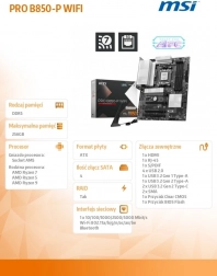 Bundkortet MSI PRO B850-P WIFI til sokkel AMD AM5 kombinerer et rent, elegant design med førsteklasses udstyr til både arbejde og gaming. Det byder på Wi‑Fi 7 med EZ Antenna, hurtig 5G LAN, support til PCIe 5.0 for M.2, dobbeltkanals DDR5 op til 8200+ MT/s (OC) samt robust strømforsyning 12+2+1 for stabil ydeevne med Ryzen 9000/8000/7000-processorer.