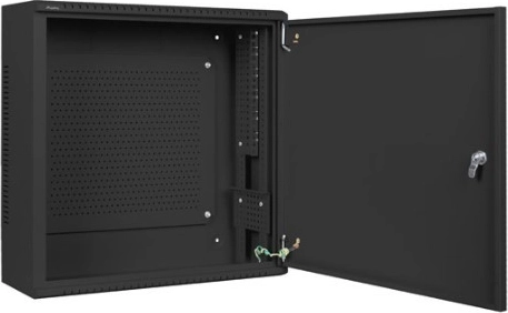 Skabet leveres samlet med låsbare døre for sikker opbevaring af netværks- og CCTV-udstyr. Vægmontering er hurtig og sikker takket være forborede huller.