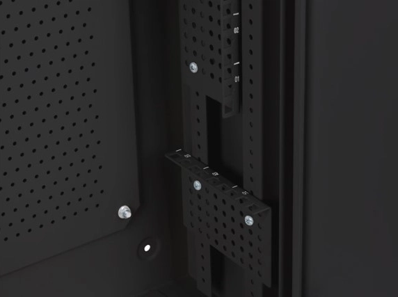 - Sikkerhed og orden – låsbare døre, bageste mesh-plade til M4-skruer, inklusive DIN-skinne, jordledning og ankre.