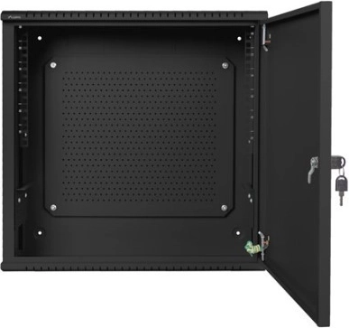 Det indvendige layout består af to nyttige niveauer: 6U til standard 19" montering og yderligere 3U til horisontal eller alternativ installation. Dørene kan åbnes fra begge sider for hurtig adgang, bagpanelet tilbyder udslagsbare gennemføringer for fleksibel kabelhåndtering, og perforering i top-, bund- og sidepaneler sikrer konstant luftgennemstrømning.