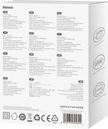 Mini netoplader Baseus GaN5 20 W USB‑C (lilla)