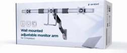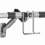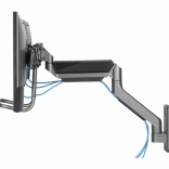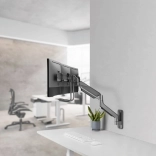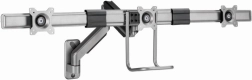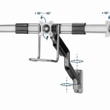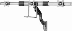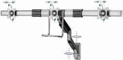 Vægbeslaget til tre skærme side om side giver præcis placering af skærmene og maksimal pladsbesparelse på bordet. Den lette, men robuste konstruktion med gasfjeder sikrer jævn balance og komfortabel justering med én hånd.