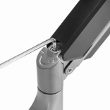 Gasfjederen balancerer skærmenes vægt og muliggør glidende højde-, vippe- og afstandsjustering med én hånd.
