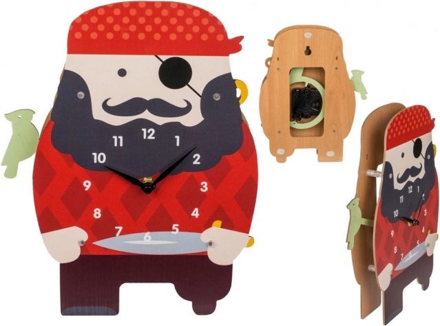 Morsomt vægur i form af en pirat beriger ethvert børneværelse. Fremstillet af træplade og ideel til både drenge og piger.
