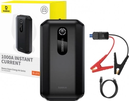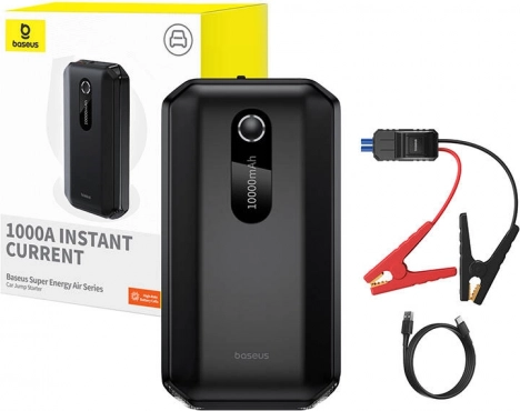 Den kompakte starthjælpsenhed BASEUS Super Energy starter pålideligt din bil, selv med et afladet batteri. Den tilbyder spidsstrøm på 1000 A, kapacitet på 10000 mAh, sikre beskyttelser mod overspænding, overophedning og kortslutning og fungerer samtidig som en powerbank med USB og USB‑C 5 V/2,4 A. Ideel til enhver bil og til vinterforhold.