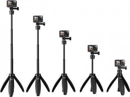 Takket være den teleskopiske længde på 15–40 cm fanger du nemt både brede scener og fine detaljer. Forstærkede stativben danner en stabil trekantet base, så du kan filme selv på mindre jævne underlag – ideelt til vlogs, time-lapse eller live-udsendelser.