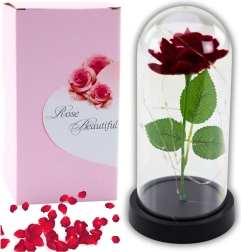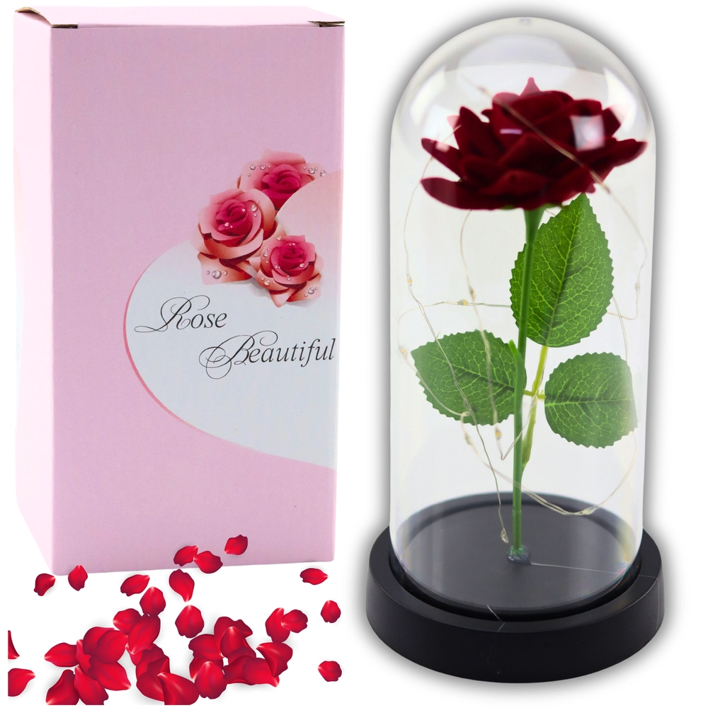 Den evige rose i kuppel med LED-belysning er en luksuriøs dekoration, som aldrig visner. Et symbol på kærlighed og følelser, der ikke kræver nogen vedligeholdelse.