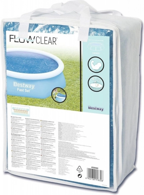 Den solare overtræksdug er en enkel og effektiv løsning til at holde vandet rent i fritstående BESTWAY Fast Set pools med en diameter på 244 cm. Den flyder direkte på overfladen, hvorved den forhindrer blade, insekter og andet snavs i at komme i vandet, og fungerer samtidig som termisk isolering – vandet forbliver behageligt varmt længere.
