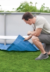 Tilstrækkelig stor flade til forskellige typer fritstående pools. Let at lægge ud og tilpasse underlaget.