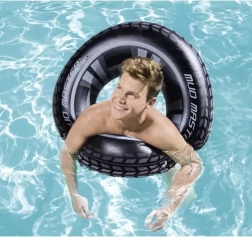 Baderingen har et autentisk udseende af et bildæk, hvilket både tiltrækker børn og voksne og tilføjer et sjovt element til enhver pool.