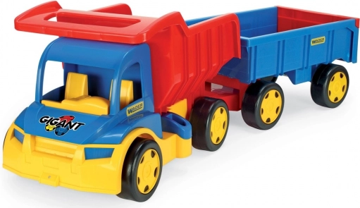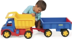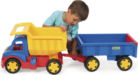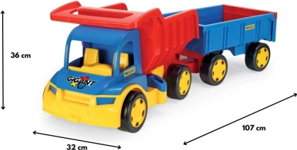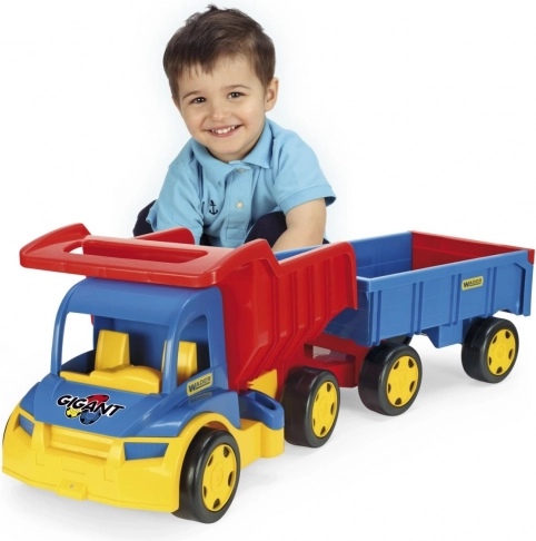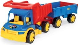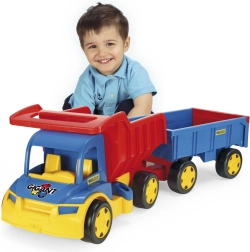Denne kæmpe lastbil med trailer er ideel til alle små lastbilentusiaster. Den store og robuste konstruktion giver holdbarhed og langvarig leg. Med den aftagelige anhænger kan børn nemt trække lastbilen og bruge den til at transportere legetøj eller andre genstande. Leg og læring i ét: lastbilen stimulerer børns fantasi, forbedrer finmotorikken og understøtter hånd-øje-koordination. Perfekt til leg både inde og ude.