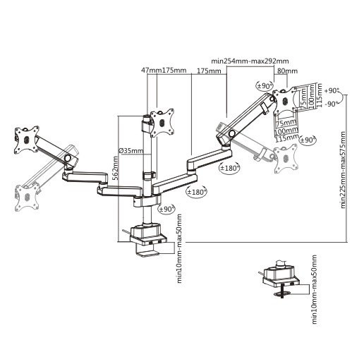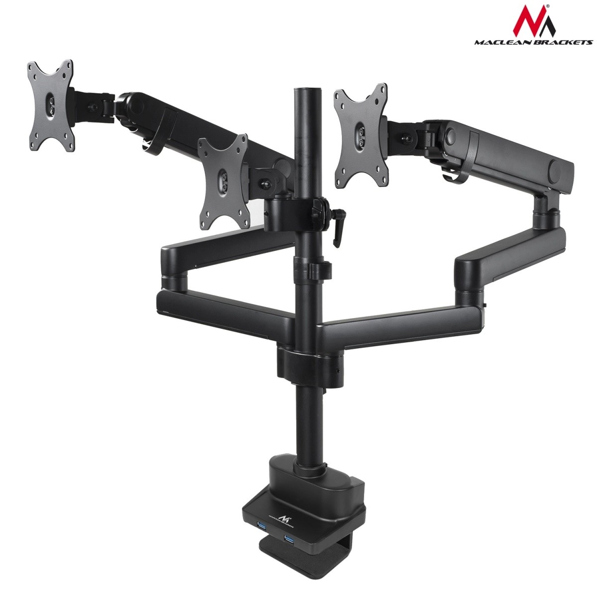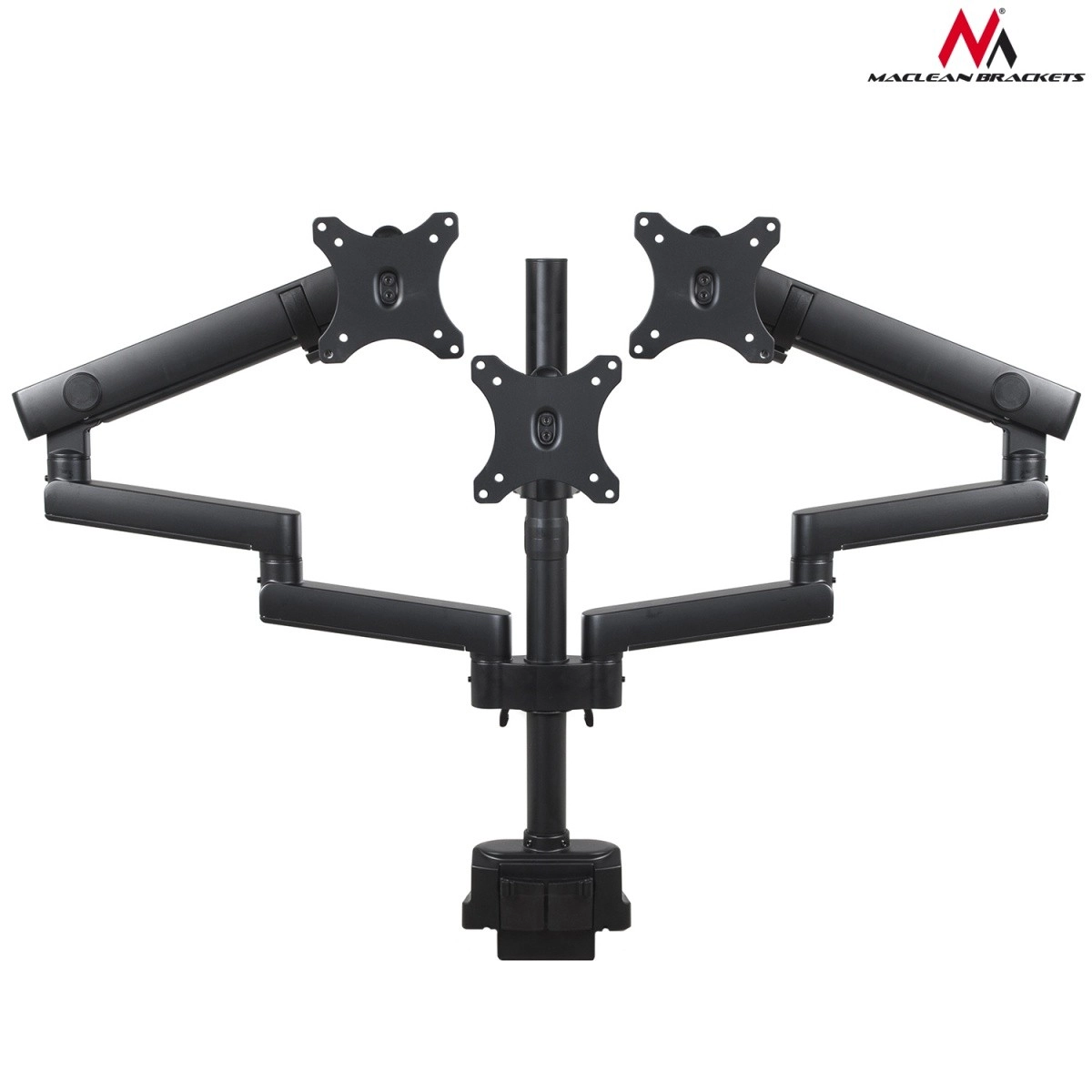 Dette professionelle beslag til tre skærme er designet til moderne arbejdsstationer på kontoret og derhjemme. Det giver glidende justering af hældning, rotation og højde, så du nemt opnår den ideelle synsvinkel, reducerer øjentræthed og støtter korrekt kropsholdning. Den robuste aluminiums konstruktion sikrer stabilitet og lang levetid.