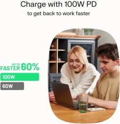Tilbyder lynhurtig opladning af enheder, fra høretelefoner til bærbare computere, takket være understøttelse af USB Power Delivery.