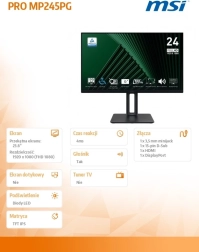 MSI PRO MP245PG er en alsidig 23,8" IPS-skærm designet til produktivitet og komfort. Med Full HD-opløsning og 100 Hz opdateringsfrekvens får du jævn rulning, bedre læsbarhed og hurtigere respons i dagligt arbejde og let gaming. De tynde rammer fremmer multitasking i opsætninger med flere skærme.