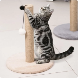 Kradsøjl for katte er et fremragende valg til stimulering og underholdning af dine pelsede venner. Dette produkt understøtter naturlig fysisk aktivitet og hjælper med at opretholde dit kæledyrs helbred med en fast søjle dækket med sisalreb og et hængende legetøj med en bold til sjov.