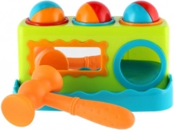Denne farverige bankebænk i plastik på 21 cm er et glimrende valg til de første udviklende lege. Med hammeren banker børnene sikkert tre bolde ned i de forberedte huller og træner dermed greb, styrke og præcision. Det integrerede spejl på fronten øger interaktion og underholdning.