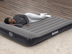 Den oppustelige seng Bestway TRITECH er en pålidelig makker til overnatning derhjemme og på farten. Den indvendige TRITECH‑konstruktion er forstærket for langvarig formstabilitet og er mere modstandsdygtig over for udvidelse end almindelig PVC. Den behagelige, ruskindsagtige overflade øger komforten og forhindrer, at sengetøjet glider.