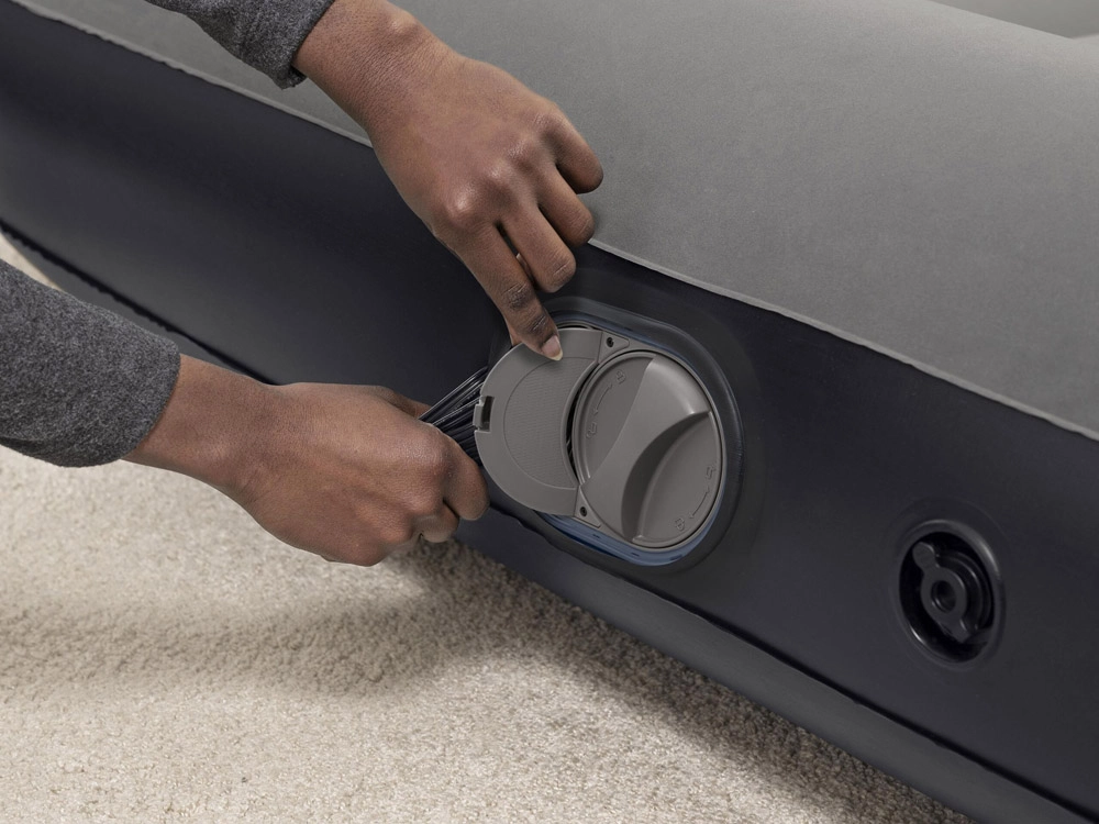 Den integrerede pumpe med USB‑strøm fylder madrassen på 3–4 minutter. Nem betjening derhjemme, i sommerhuset og på camping – tilslut blot en adapter eller powerbank.