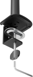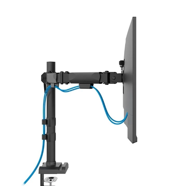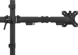 Beslaget er kompatibelt med VESA-standarderne 75x75 eller 100x100 mm og muliggør brug af valgfrie adaptere til ikke-standardiserede hulmønstre. For nem installation er beslaget udstyret med Easy-release-systemet, som gør montering og afmontering af skærme lettere. Montering med klemme eller gennemføring er også mulig, hvilket fremskynder hele processen.